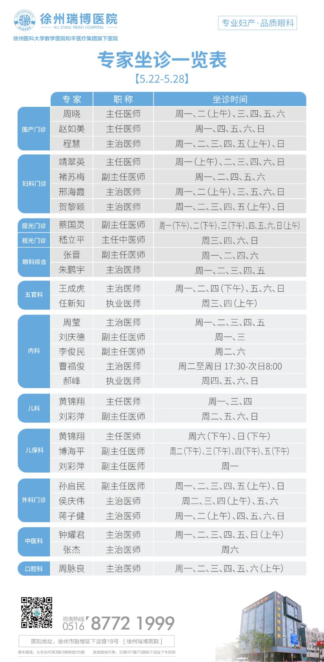 专家坐诊时间表